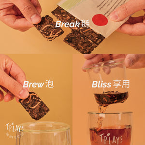 Unwrap to brew: open the pack to reveal the chocolate-style pressed tea bar.