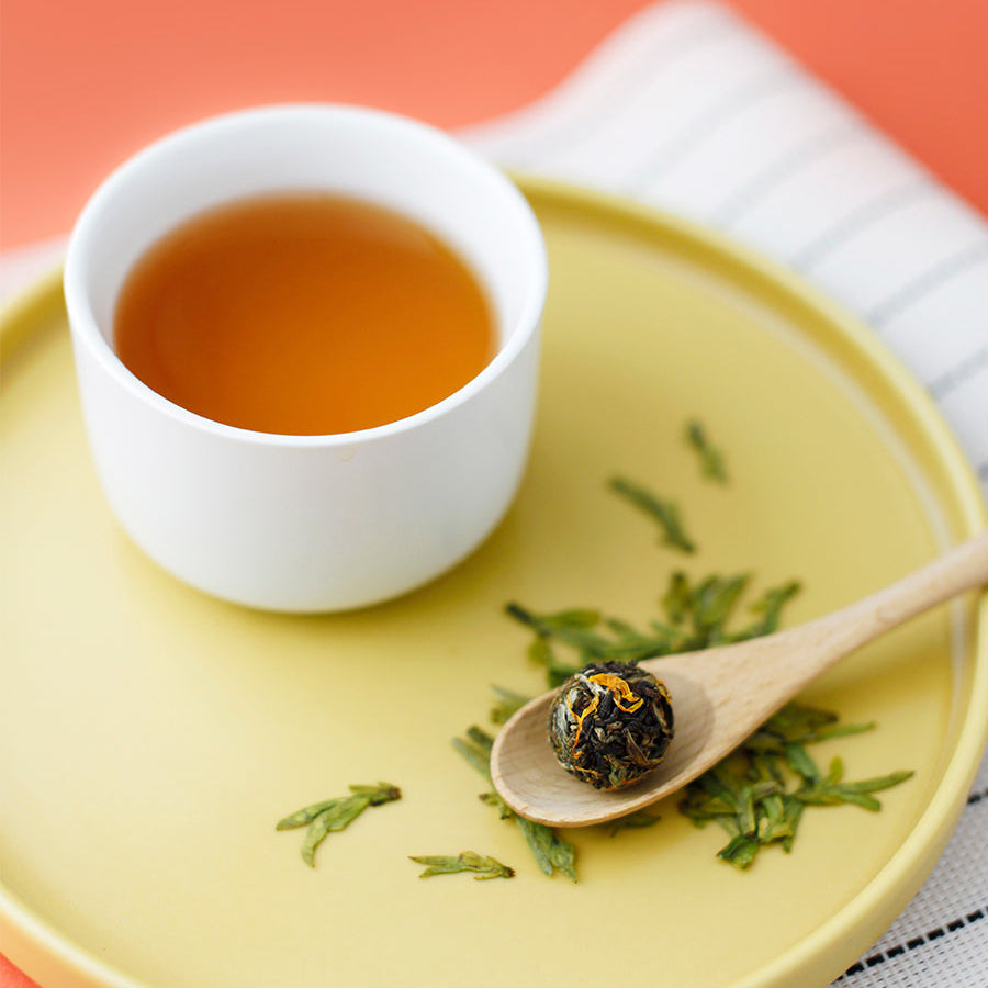 Discover a refreshing twist on traditional tea — organic Yunnan black tea, chrysanthemum flowers, and mint leaves are artfully pressed into candy-like tea bonbons. Each bonbon brews up to 3 cups, offering a perfect balance of strength, aroma, and calm in every sip.