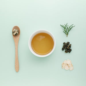 Organic black tea · Chrysanthemum flowers · Mint leaves